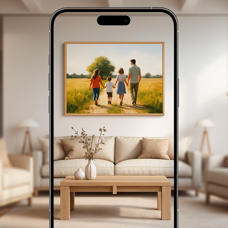 Offrez une œuvre personnalisée qui se suspend fièrement au mur : un cadeau unique, intime et durable, qui rappelle un moment précieux à chaque regard.